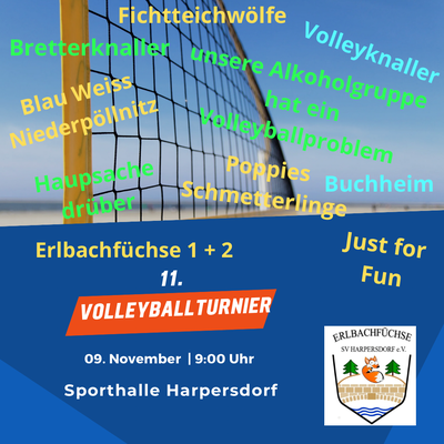 Am Sonntag den 17.11.24 luden wir zu unserem 10. Hallenvolleyballturnier nach Harpersdorf ein. Es trafen 12 Mix Mannschaften (eine Frau Pflicht). u.a. aus Jena, Hermsdorf, Gera, Münchenbernsdorf, Niederpöllnitz, Weißendorf (Sachsen) und Bad Klosterlausnitz aufeinander. Da wir in letzter Zeit stark gewachsen sind und sogar einen Aufnahmestopp aussprechen mussten, weil wir an unsere räumlichen Grenzen stoßen, sind die Erlbachfüchse mit 3 Teams angetreten. 9:00 Uhr ging es schon los. Die Vorrunde wurde in 2 Gruppen (Jeder gegen Jeden) 2x8 min. gespielt. Unser „Senioren“ Team war leider durch Verletzungen noch nicht voll Einsatzfähig, wollten aber trotzdem antreten und konnten auch ein paar Sätze für sich entscheiden. Unsere 1. konnte alle Sätze in der Vorrunde mit teilweise großem Vorsprung für sich entscheiden und mussten nur gegen Niederpöllnitz 2 Sätze knapp abgeben. Wir hatten plötzlich das Gefühl, da geht noch was… So beendeten wir die Vorrunde als Gruppen 2. hinter BW Niederpöllnitz. Die 2. Gruppe führten „Die schon wieder“ (Münchenbernsdorf) Punktgleich vor Relationship Gera aber mit besserer Balldifferenz. Im Halbfinale trafen beide 6er Gruppen über Kreuz aufeinander. Das Halbfinale fühlte sich für uns an wie ein Finale. Gegen den 3fachen Turniersieger „Die schon wieder“ kamen wir gut ins Spiel und machten wenig Fehler. Den ersten Satz konnten wir knapp für uns entscheiden. Der 2. Satz begann für uns noch besser und wir führten plötzlich 11:3, die Halle wurde immer lauter und die Spannung war fast nicht auszuhalten. Doch dann fanden die Münchenbernsdorfer wieder in ihr Spiel und holten stark auf aber wir hielten dagegen und gewannen auch den 2. Satz. Das war uns noch nie gelungen. Dann wurde uns langsam klar, dass wir im Finale standen. Zum allerersten Mal waren die Erlbachfüchse im Finale… das war unglaublich. Unser Gegner, wieder Blau Weiss Niederpöllnitz, die an dem Tag unglaublich stark waren. Der 1. Satz ging unentschieden 12:12 aus, also musste es der 2. Entscheiden. Beide Teams schenkten sich nichts und die Führung wechselte regelmäßig. Als das Zeitsignal kam, stand es 12:11 für Niederpöllnitz. Es war für beide Teams ein Triumpf. Niederpöllnitz holte sich zum ersten mal den Turniersieg und wir standen das erste mal im Finale und demzufolge ein senationeller 2. Platz.